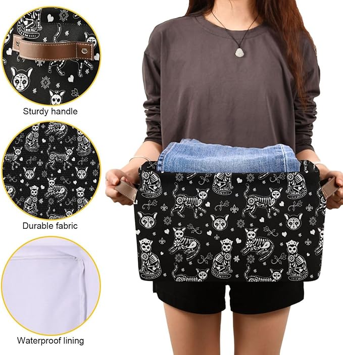 Storage Basket Bin Death Helloween Cats Gothic Organizer Basket Collapsible Shelf Basket Cube with handle for Nursery Bedroom Bathroom