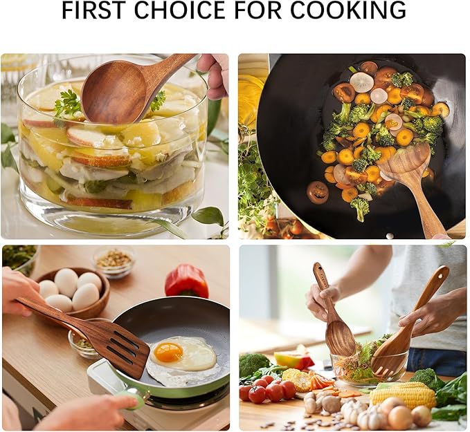 7-Piece Wooden Cooking Utensil Set - Teak Spatula and Spoons for Kitchen