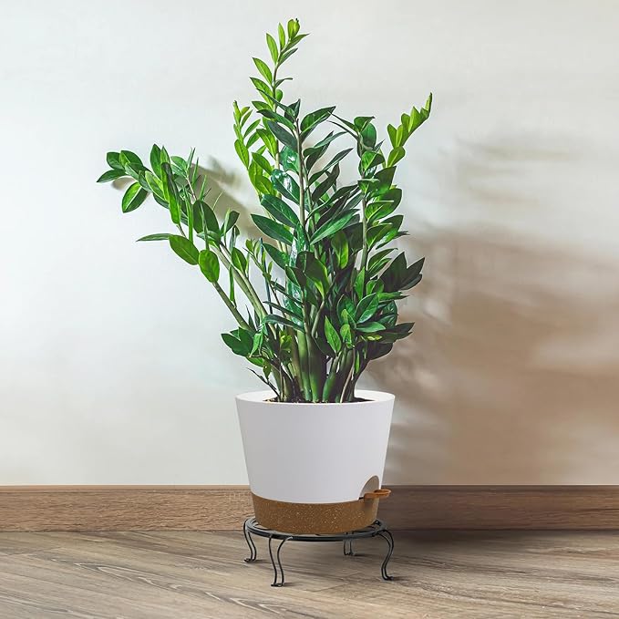 Self Watering Pots for Indoor Plants,12 inch Planters with Drainage Holes Plastic Flower Pots with Deep Reservoir, White with Brown