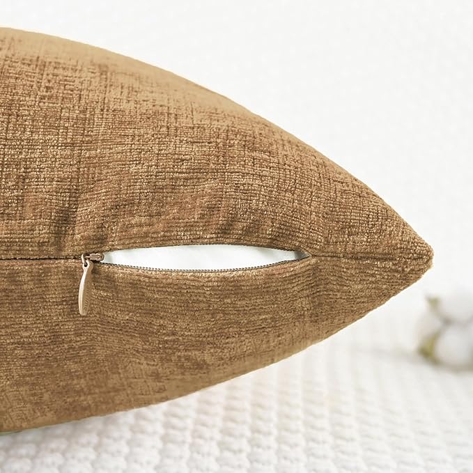 CaliTime Throw Pillow Covers Decorative 18 X 18 Inches Pack of 4 Cozy Chenille Cushion Cases for Couch Sofa Bed Living Room Home Apricot Brown
