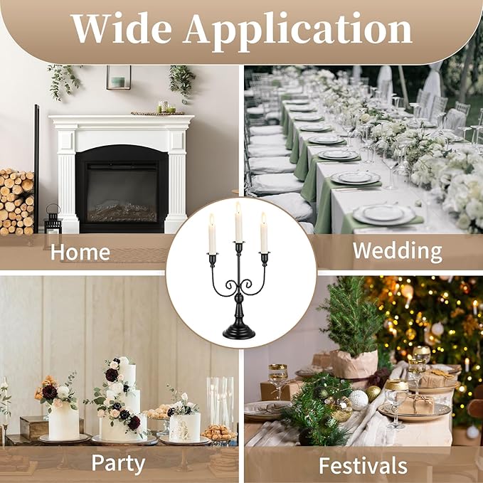 Sziqiqi Candle Holders 3-Arms Candelabra - Black Halloween Candelabras Metal Candleholder Stands Decoration for Thanksgiving Christmas