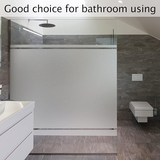 - ECONOMICAL FOR MULTI-SCENARIOS: No need to use heavy and expensive curtains or blinds, the glass frosting film is suitable for any FLAT, CLEAN, and SMOOTH glass door, window surfaces in the Bathroom, Balcony, Living Room, Bedroom, kitchen, balconie, cabinet, office, hotel etc. Note: Double-paned glass, cut glass and all processed glass is not workable for this frosted window film.