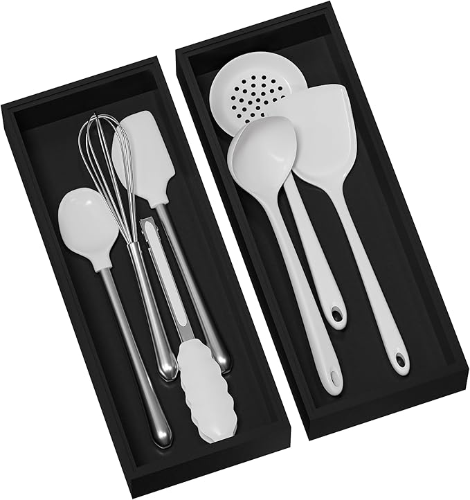 - 2 PCS Kitchen Drawer Organizer - Our kitchen drawer organizers for small or large utensils, silverware, cutlery and flatware is an absolute necessity for kitchen. This silverware organizer set offers ample space for storing most cooking utensils in the kitchen, such as spatulas, ladles, tongs, and whisks, also an great idea for organizing cutlery like spoon