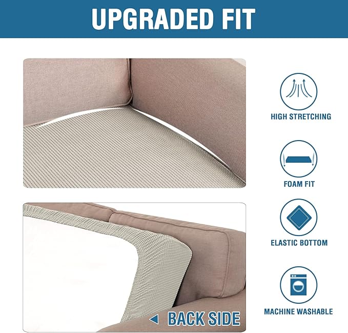- GREAT FIT: Set of 1. This innovated cushion slipcover is crafted from durable and soft high stretch knitted jacquard fabric.Sofa Seat Cover(fit total sitting area between 60-86 inches). Feature one-size-fits-most, kindly measure before ordering. Suitable for both T cushion and Box cushion styles