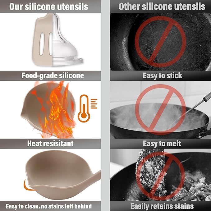 - HEAT RESISTANT, GREAT FOR NON-STICK PANS: Our utensil sets can handle temps up to 446°F without melting. The soft silicone won't scratch non-stick surfaces. The handles are firmly attached. They're durable, making cooking easier and helping your cookware last longer