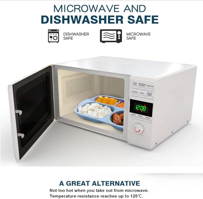 - Wheat Straw Material : PUPOPIK divided plates are made of wheat straw and food-grade PP material, a strong and durable product. Also, they are free of BPA. Non-toxic, odorless, Eco-friendly and sustainable to environment. Microwave and Dishwasher Safe.Not too hot when you take out from microwave. Temperature resistance reaches up to 120℃