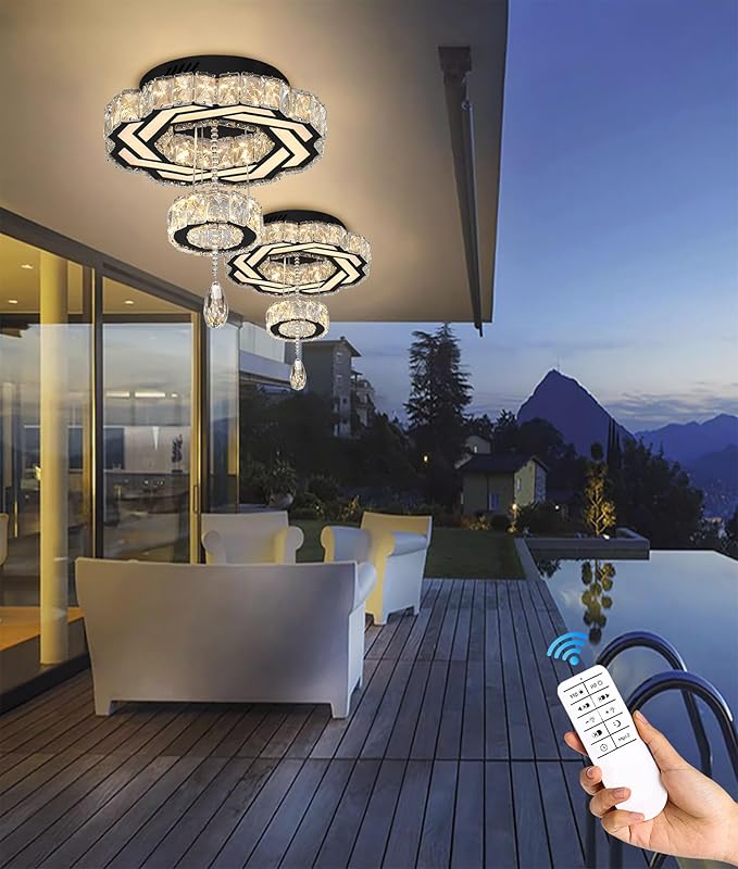 - 【Crystal Chandeliers Design】High-quality Materials. Crystal ceiling light fixture is made of high grade K9 crystals, advanced acrylic and firm stainless steel