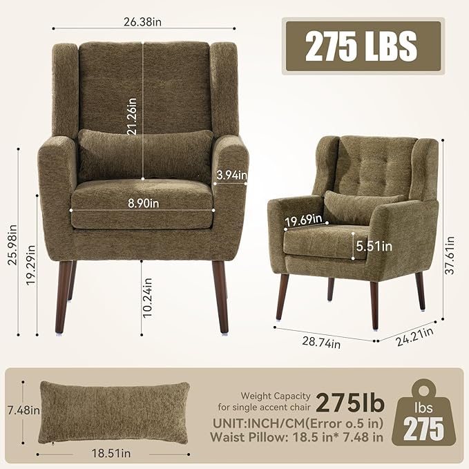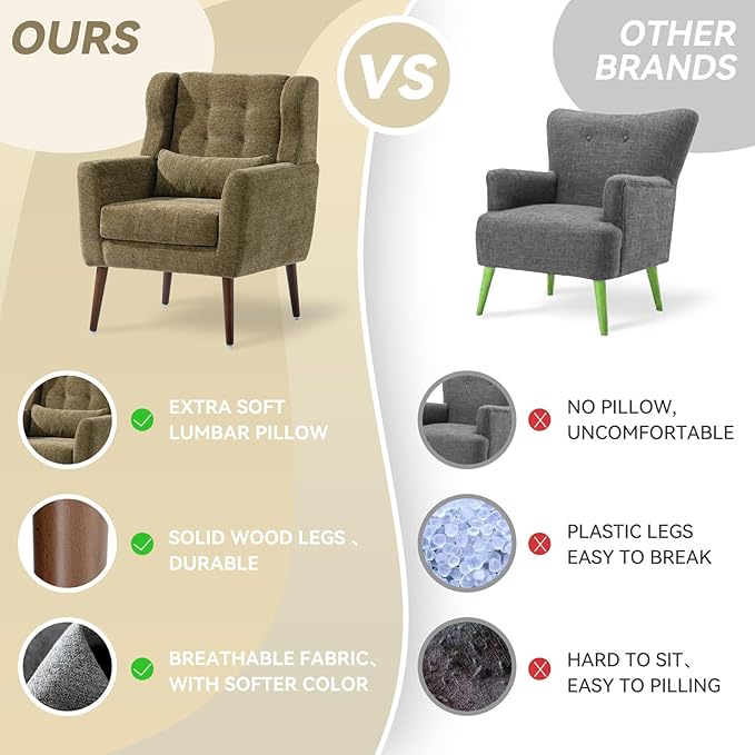 - Ergonomic Arm Chair with Back Pillow: The accent chair has breathable linen-look fabric and extra back pillow can support your back better.Features a simple profile with a deep seat and lumbar support to provide ultimate comfort make it a great choice for your living room bedroom and office spaces.