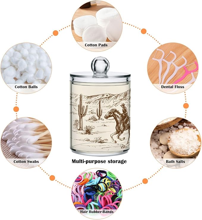 2 Pack Qtip Holder Organizer Dispenser Western Desert Cowboy Bathroom Storage Canister Cotton Ball Holder Container for Cotton Swabs/Pads/Floss