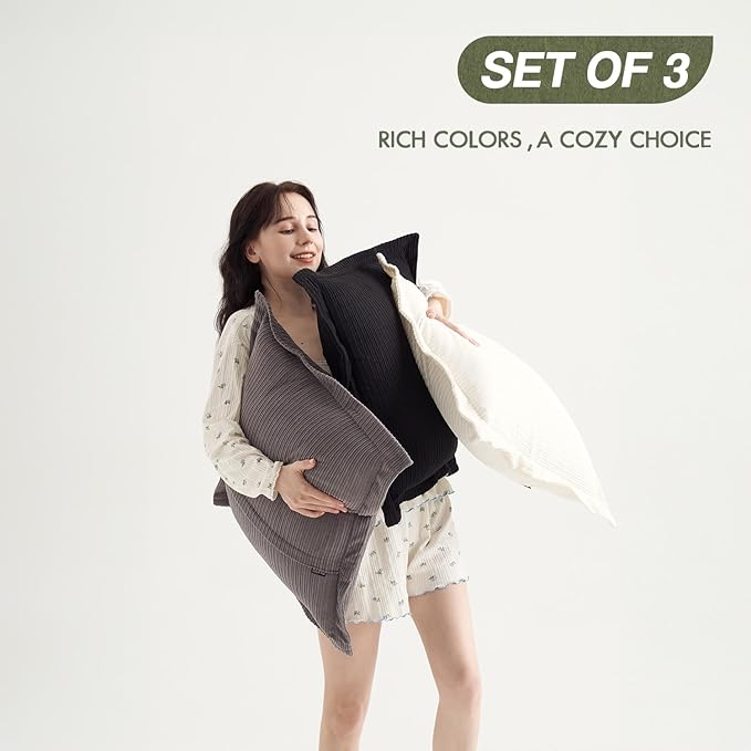 - COCO TOP: Trio pack of handcrafted 22x22" corduroy pillow covers in striking black, pristine white, and elegant gray. Vintage stripes for a timeless touch. (Note: Covers only, no inserts. Allow for a 2cm size variation.