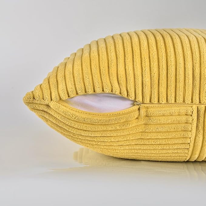 Fancy Homi 2 Packs Yellow Long Lumbar Decorative Throw Pillow Covers 12x24 Inch for Couch Bed Sofa, Rustic Farmhouse Boho Home Decor, Soft Striped Corduroy Rectangle Accent Cushion Case 30x60 cm