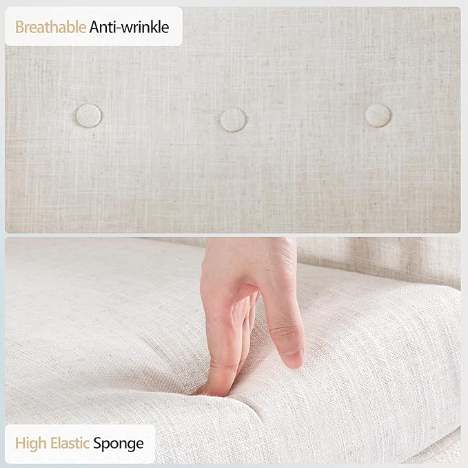 HUIMO Button-Tufted Accent Chairs Set of 2,Upholstered Reading Living Room Chair,Mid Century Modern Chair with Linen Fabric, Club Chair,Comfy Arm Chairs for Living Room,Bedroom,Beige