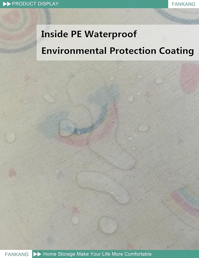 - Material:Polyester canvas + flax + PE environmental protection waterproof coating+Handle, lightweight and portable.
