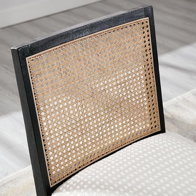 - MODERN DESIGN These modern dining chairs feature a padded cushioned seat, a square rattan back, and black wood legs. Simple but elegant, they will be a great addition to your home