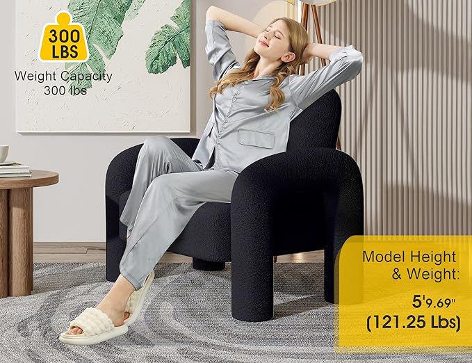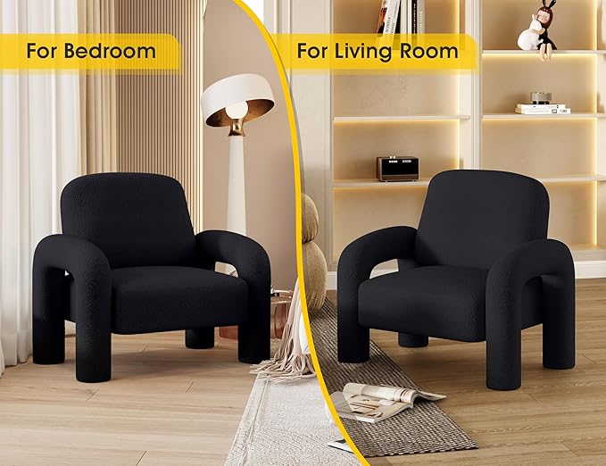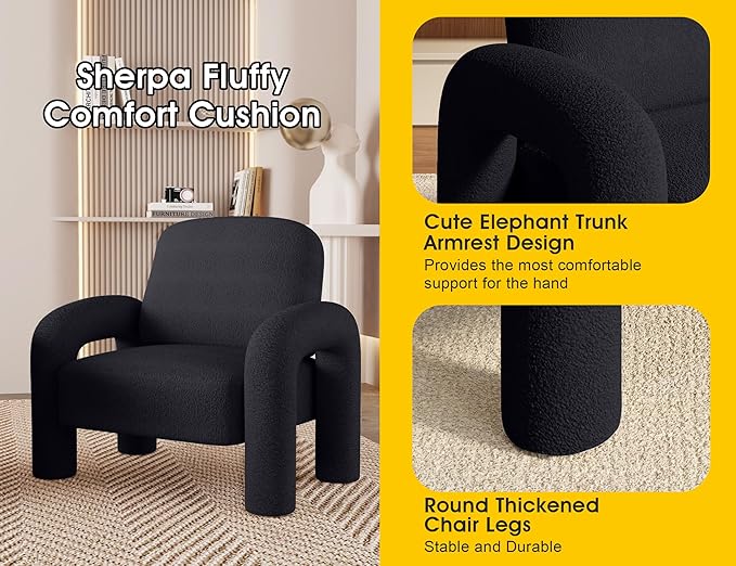 Modern Sherpa Accent Chair, Teddy Upholstered Arm Single Sofa, Cozy Fluffy Reading Chair for Living Room, Bedrooms, Corner (Black)