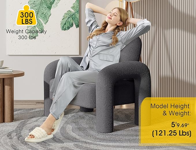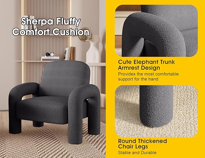 - [Cute Elephant Trunk Armrest Design] The armrests of the accent chair are smooth curved elephant trunk design, and the whole is fully wrapped by soft bag, soft and comfortable. It can fit the posture of the hand when relaxing extremely well. The unique minimalist design is a work of art that brightens up the entire space.