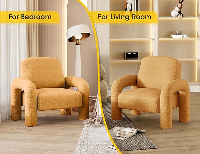 Modern Sherpa Accent Chair, Teddy Upholstered Arm Single Sofa, Cozy Fluffy Reading Chair for Living Room, Bedrooms, Corner (Yellow)