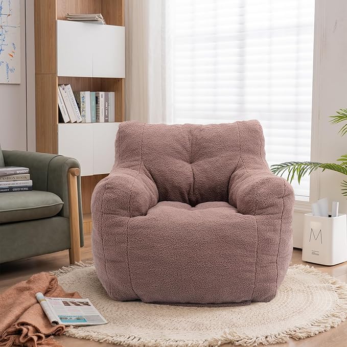 Recaceik Bean Bag Chairs, Tufted Soft Stuffed Bean Bag Chair with Filler, Fluffy Lazy Sofa Chair Lounger, Comfy Giant Bean Bag Chair for Bedroom, Living Room, Brown