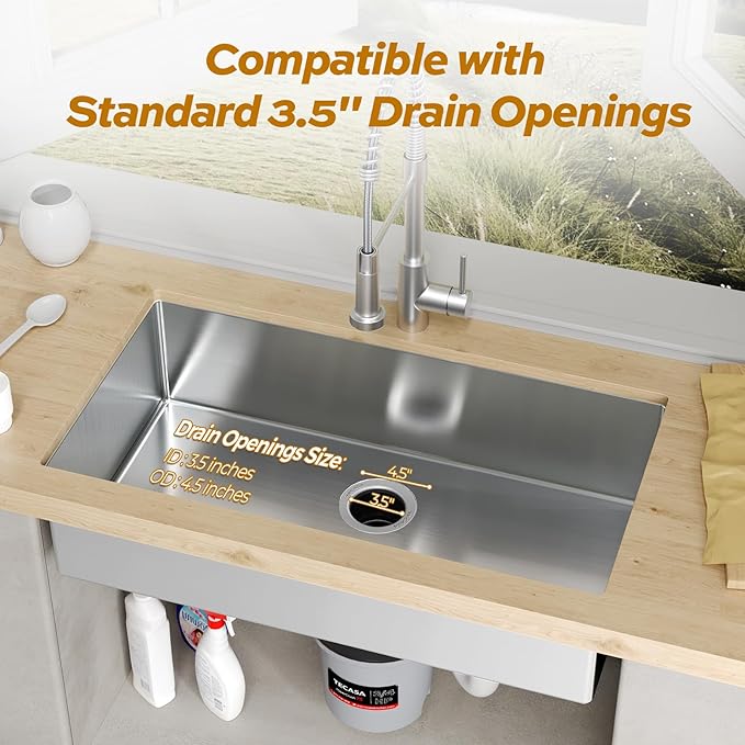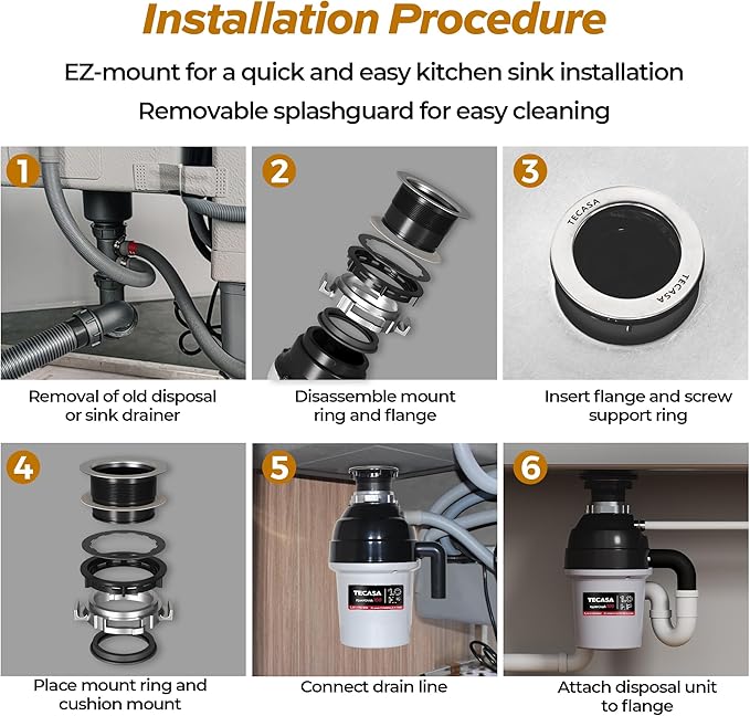 - πππππππ ππ ππππ: TECASA garbage disposal is suitable for most home kitchens for standard 3-1/2 inch sink opening hole. A pre-installed 39" power cord for electricity connection.