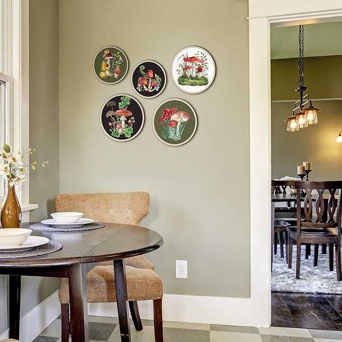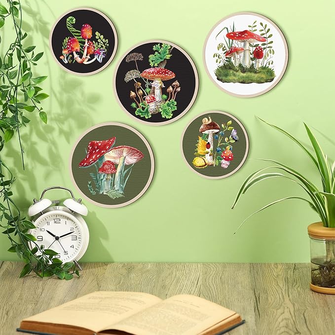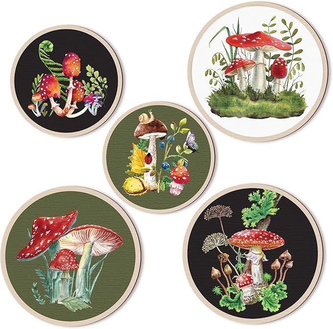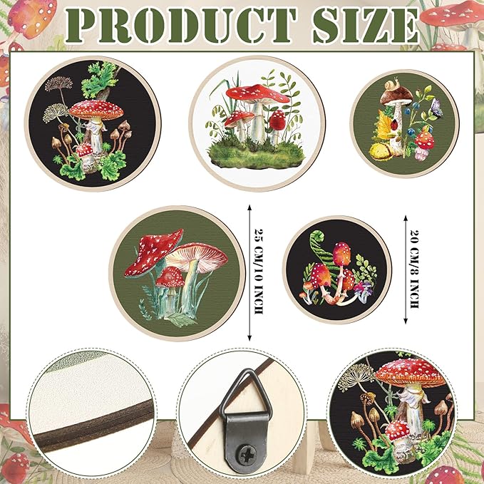 Qunclay 5 Pcs Wall Art Decor Wooden Living Room Wall Decor Bohemian Hanging Farmhouse Geometric 10'' and 8'' Aesthetic Wood Minimalist Posters for Bedroom(Mushroom)