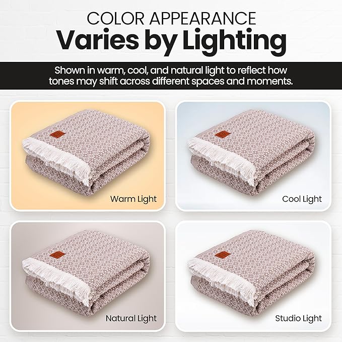 - CELEBRATE SUSTAINABLE STYLE: Made in Turkiye with recycled cotton, this cotton throw blanket brings eco-conscious comfort to your home; the soft weave and fringe detail give this woven blanket for bed a rustic, decorative touch that layers beautifully in any space