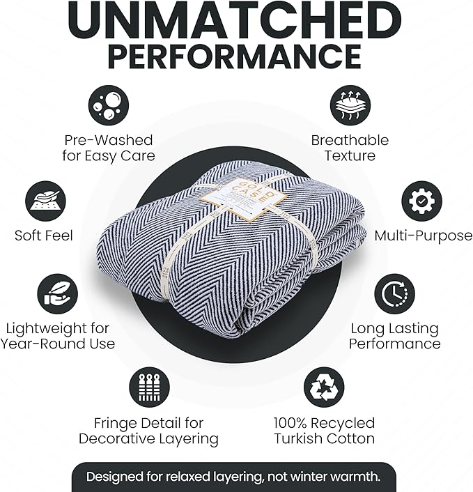 - LIGHTWEIGHT LAYERS FOR RELAXED MOMENTS: Woven from 100% recycled Turkish cotton, this breathable cotton blanket throw adds a soft, textured touch to your space; this bed throw blanket made for layering on your bed, or adding a laid-back look to your decor