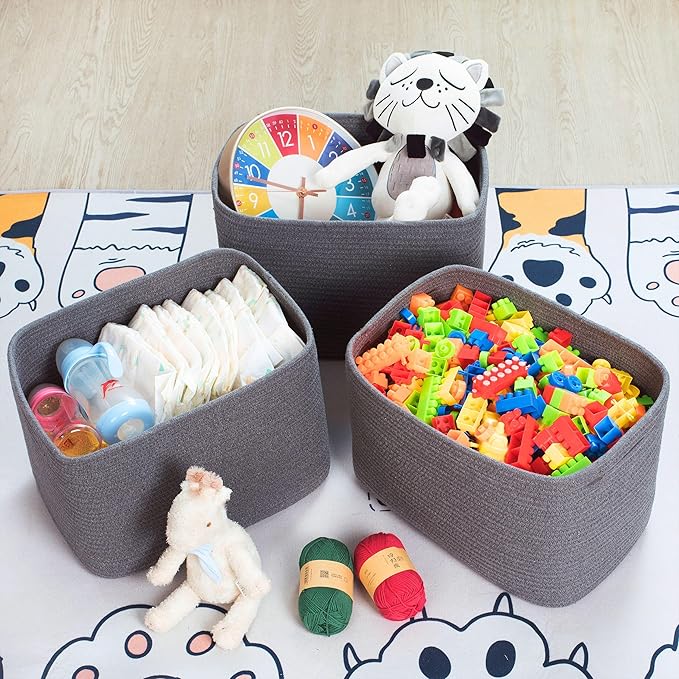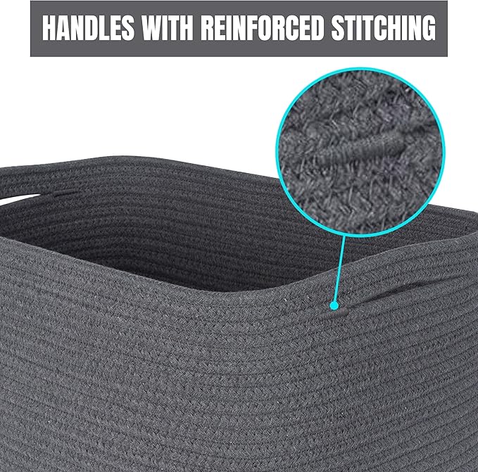 - Handcrafted & No Sharp Edges - Handmade from premium materials, our baskets are soft to the touch, yet sturdy enough to hold its shape. The workmanship ensures there are no sharp or hard edges to scratch furniture. Use them with complete peace of mind in recreation room, playroom, pet toy room, living room, bedroom, nursery room, bathroom, laundry room, mudroom, pantry, arts & crafts room, home office or even garage.