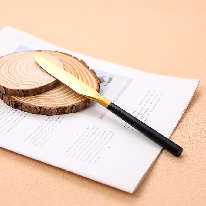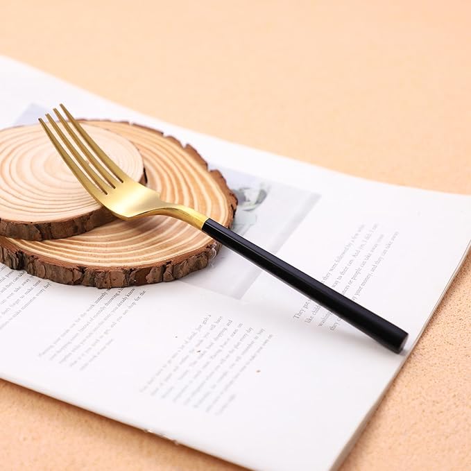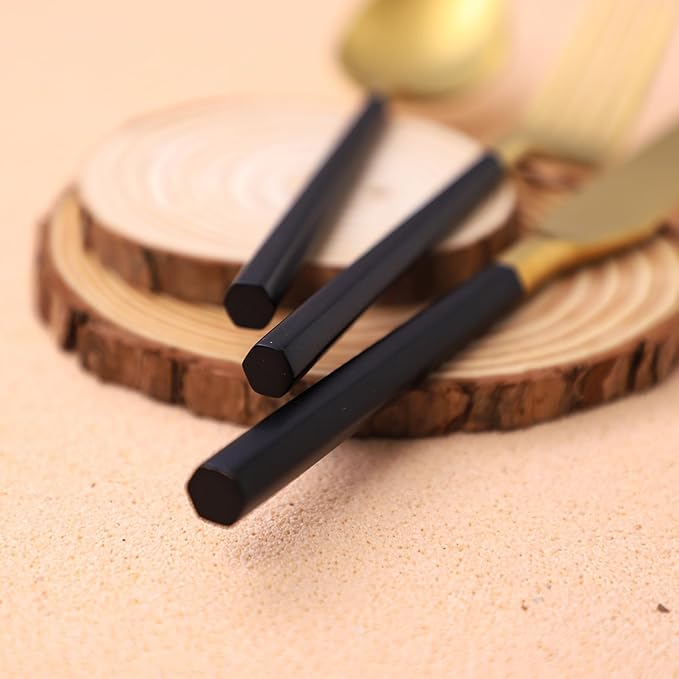 Matte Silverware Set Gold Flatware Set with Hexagon Handle 20 Pieces 18/0 Stainless Steel Cutlery Set Wedding Housewarming Gift Service for 4 (Matt black gold)