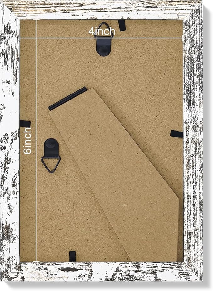 - Wall Hanging and Tabletop Display: Our 4x6 frames feature hanging hooks and an easel back for easy wall mounting or tabletop display, horizontally or vertically. Each set includes hanging nails for effort and less photo display