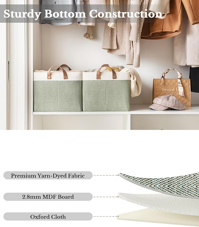 - Premium Quality: Made from high-quality fabric and reinforced with a heavy-duty MDF bottom board and a sturdy metal frame. The solid construction enables the storage bins to stand upright without support, even when empty.