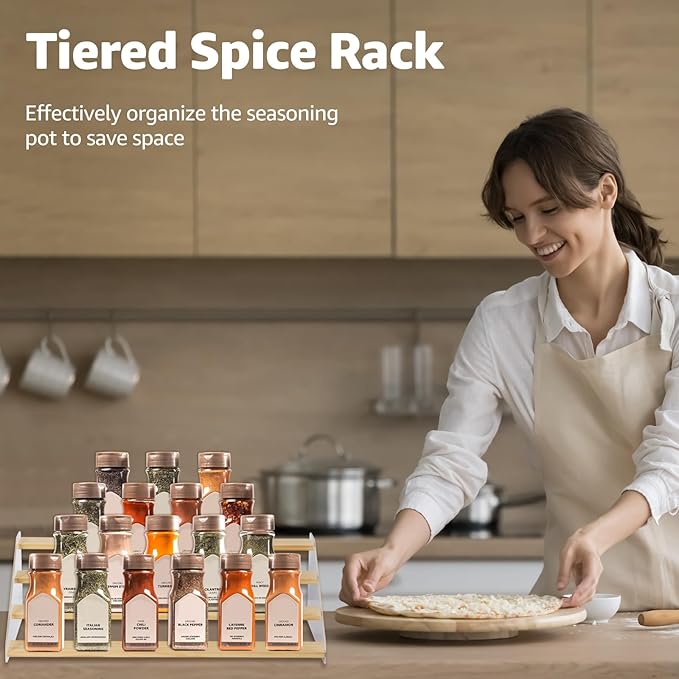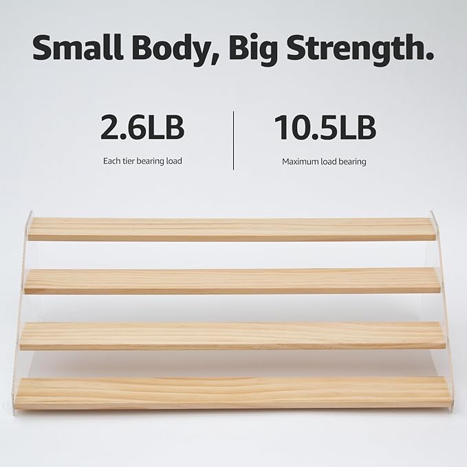 - Elegant & Sturdy: Risers display stands constructed from high-quality pine wood and corrugated acrylic, making it both aesthetically pleasing and fashionable, as well as durable and resistant to deformation, the spice shelf is a beautiful and robust addition to any space