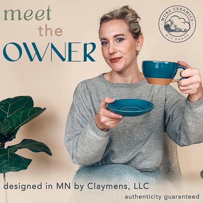 Mora Ceramic Latte Art Mug With Saucer - 10.5 oz, Round Bottom For Perfect Pours - Cafe Cups for Cappuccino, Espresso, Coffee, Tea etc - Porcelain Set for Baristas, Great Gift - Azure Blue