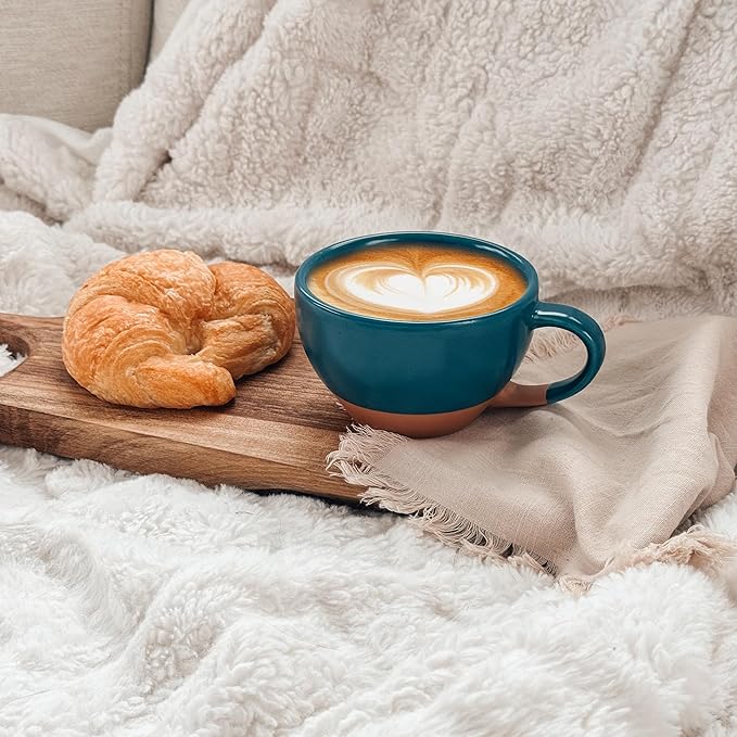 - DESIGNED FOR LATTE ART POURS: The shape of the mug has a large impact on "the perfect pour". This design offers a wide brim so there is more space to pour your design and a curved round bottom for ideal milk "flow", so you can start the latte art early in the pour. She also features thick porcelain to provide good insulation, be break resistant, and a pleasant mouth feel.