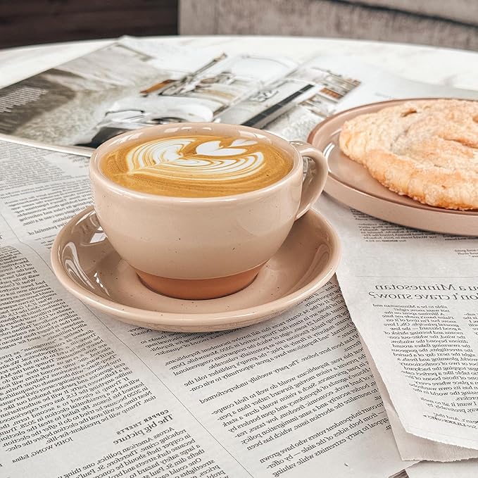 Mora Ceramic Latte Art Mug With Saucer - 10.5 oz, Round Bottom For Perfect Pours - Cafe Cups for Cappuccino, Espresso, Coffee, Tea etc - Porcelain Set for Baristas, Great Gift - Chai Latte