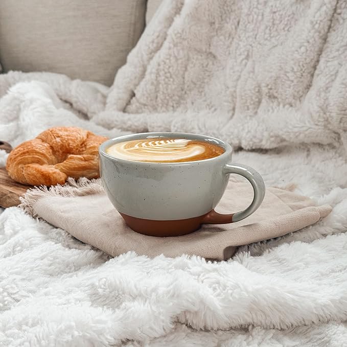 - DESIGNED FOR LATTE ART POURS: The shape of the mug has a large impact on "the perfect pour". This design offers a wide brim so there is more space to pour your design and a curved round bottom for ideal milk "flow", so you can start the latte art early in the pour. She also features thick porcelain to provide good insulation, be break resistant, and a pleasant mouth feel.