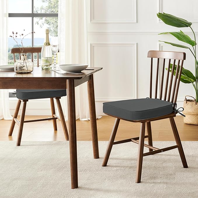 - Highly Supportive Foam Filler: Made with premium high-density foam, this dining chair cushion rebounds quickly for superior comfort, reducing discomfort even when sitting on hard chairs. It maintains its shape over time for long-lasting use