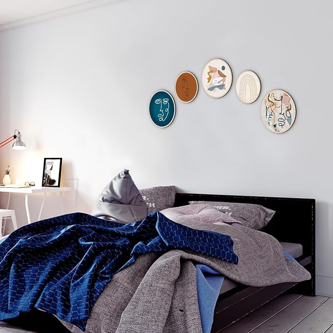 - Proper Size for Display: there are 2 kinds of sizes of the aesthetic wall art, 3 bigger ones measure about 10 inches/ 25 cm in diameter, and 2 smaller ones are about 8 inches/ 20 cm in diameter, all of them are about 0.2 inch/ 0.5 cm in thickness, proper size to catch people's attention