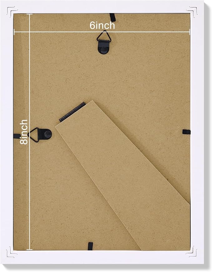 - Wall Hanging and Tabletop Display: Our 6x8 frames feature hanging hooks and an easel back for easy wall mounting or tabletop display, horizontally or vertically. Each set includes hanging nails for effort and less photo display