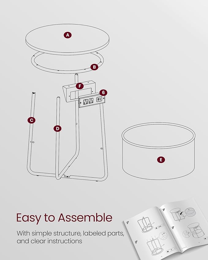 - [Easy Assembly] With its intuitive design, clear instructions, and numbered parts, this side table with charging station can be set up in just 10-15 minutes. Patented Design, No. USD1065896S1