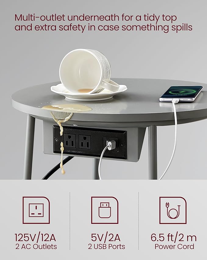 - [Built-in Charging Station] This side table is equipped with 2 AC outlets and 2 USB ports under the top, allowing you to charge your lamp, phone, tablet, and other devices conveniently without having to search for outlets