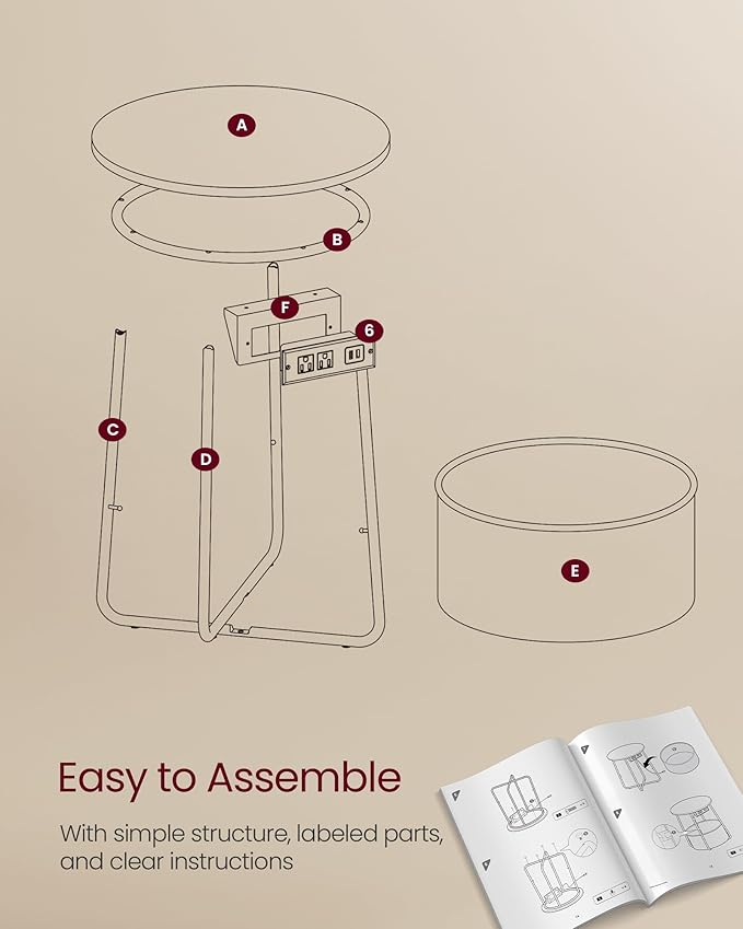 - [Easy Assembly] With its intuitive design, clear instructions, and numbered parts, this side table with charging station can be set up in just 10-15 minutes. Patented Design, No. USD1065896S1