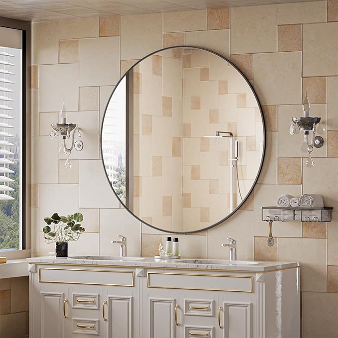 - Modern Brushed Frame Design: 42-inch black circle mirror is crafted of an aluminum alloy metal sleek frame, making it ideal for bathroom mirror, entrance mirror, vanity mirror, living room mirror