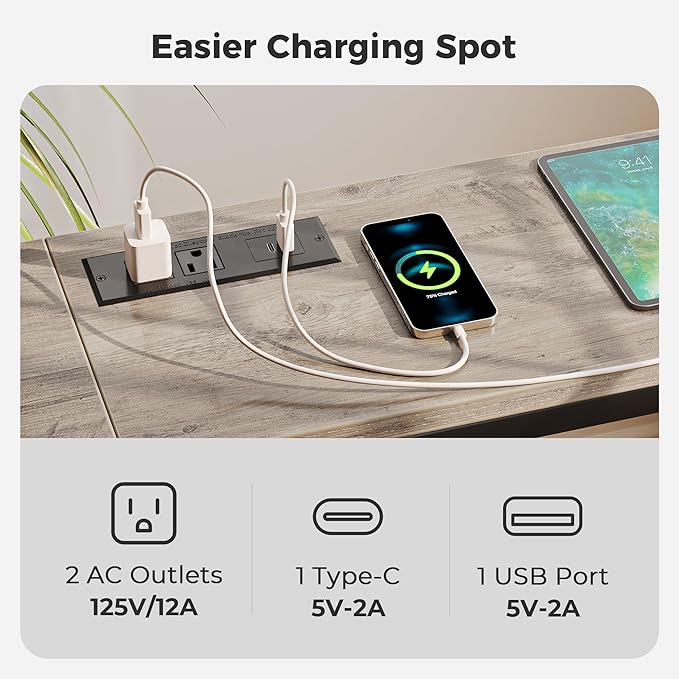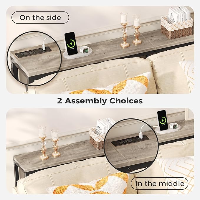 - [No Low Battery Warnings]: Imagine lounging on your sofa and brushing your phones to relax after a busy week. Don’t let low battery disappoint you. Let this sofa table narrow long with 2 AC outlets, 1 USB port and 1 type-C port provide close-at-hand power