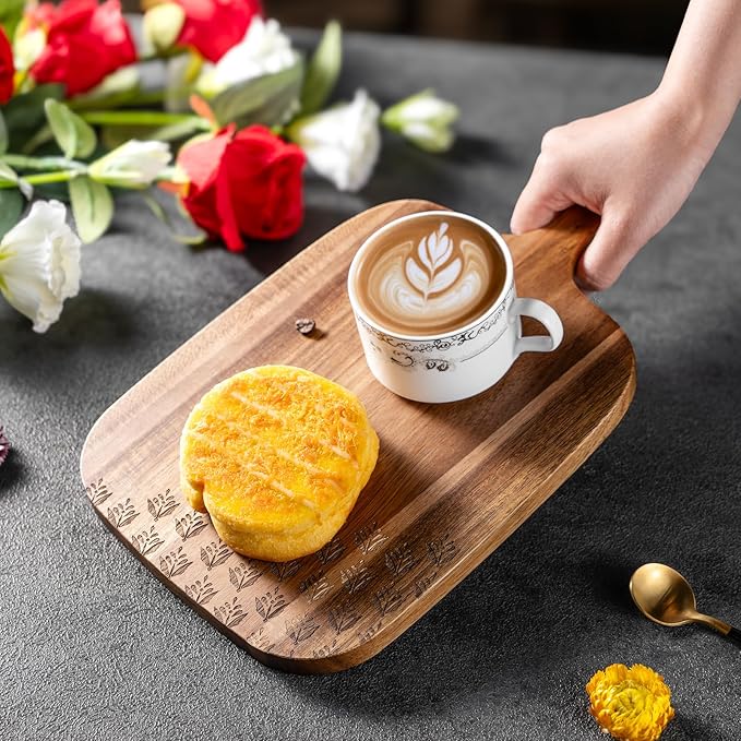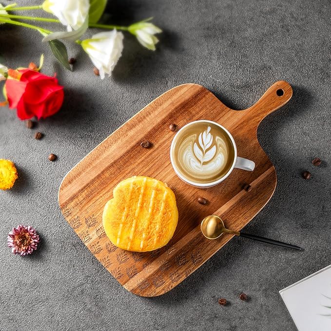 Acacia Wood Cutting Board - Wooden Kitchen Cutting Board for Meat, Cheese, Bread,Vegetables &Fruits- Charcuterie Board Cheese Serving Board with Handle,12" x 7”