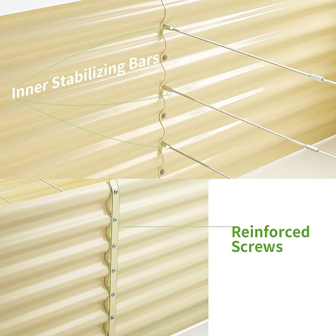 - 【Sturdy and Durable】The raised bed is made of thickened galvanized metal for strength and durability. The surface is coated with an upgraded powder coating for strong rust and corrosion resistance for long term use.