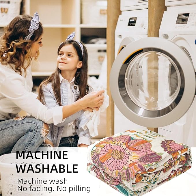 Boho Throw Blanket for Bed - 100% Pure Cotton Ultra Soft Rustic Quilt - Farmhouse Decor Bed Blankets, All Season Rustic Throw for Sofa Couch Chair(60"×80", Floral Blossom)