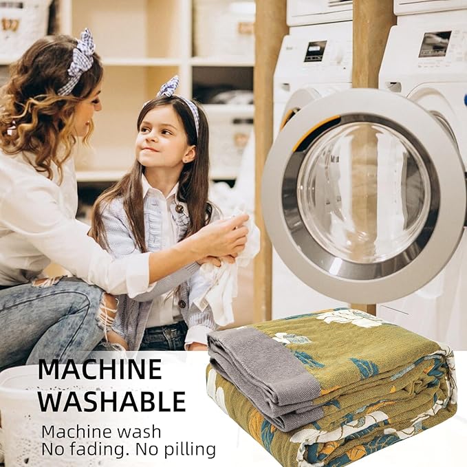 Boho Throw Blanket for Bed - 100% Pure Cotton Ultra Soft Rustic Quilt - Farmhouse Decor Bed Blankets, All Season Rustic Throw for Sofa Couch Chair(60"×80", Flower Branch)