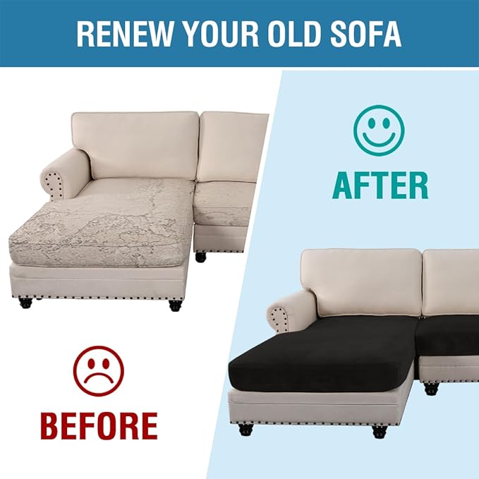 - UPGRADED THICKER: Each individual cushion cover fits up to 19.6-29 inch width, 21.6-30.5 inch depth, 3-8 inch thickness while the chaise cover fits up to 32-38 inch width, 54-62 inch depth, 3-8 inch thickness. Feature one-size-fits-most, kindly measure before ordering