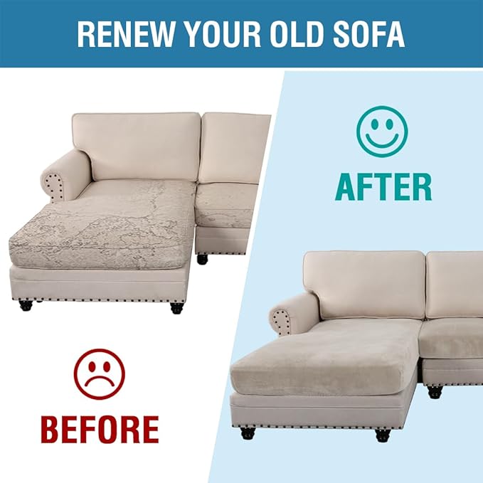 - UPGRADED THICKER: Each individual cushion cover fits up to 19.6-29 inch width, 21.6-30.5 inch depth, 3-8 inch thickness while the chaise cover fits up to 32-38 inch width, 54-62 inch depth, 3-8 inch thickness. Feature one-size-fits-most, kindly measure before ordering