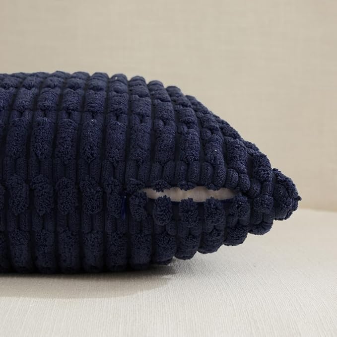Fancy Homi 4 Packs Navy Blue Decorative Throw Pillow Covers 14x24 Inch for Living Room Couch Bed Sofa, Rustic Modern Farmhouse Boho Home Decor, Soft Plush Corduroy Cute Square Cushion Case 35x60 cm